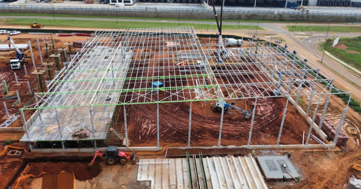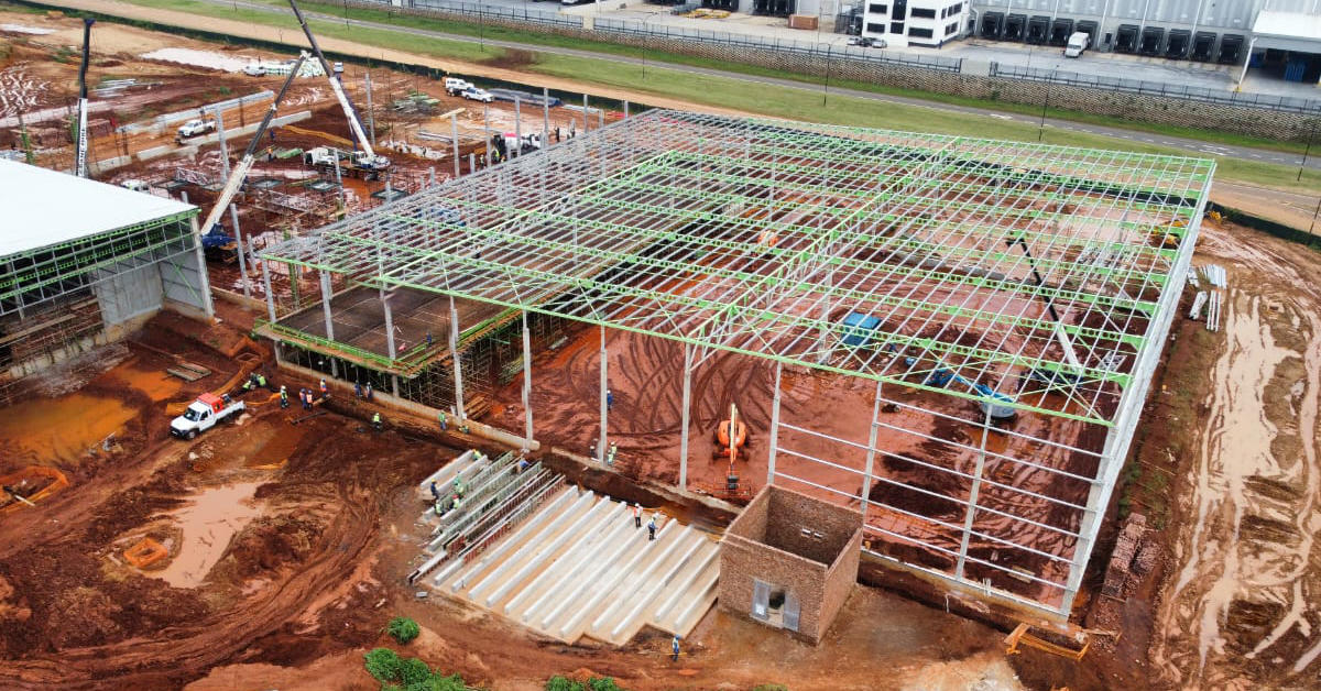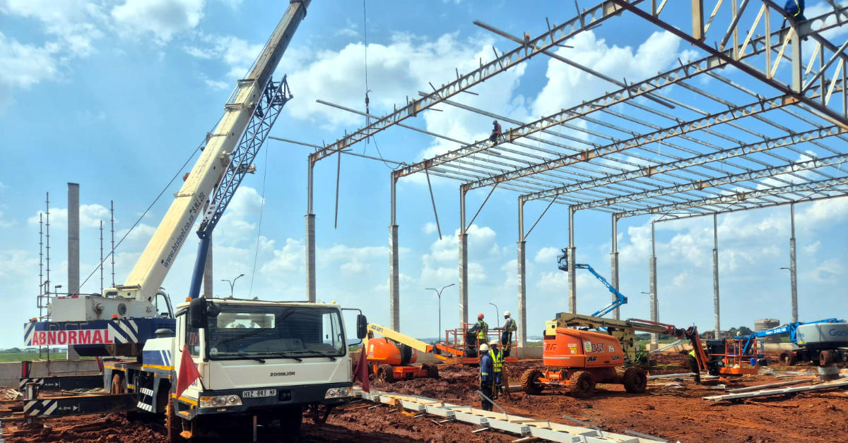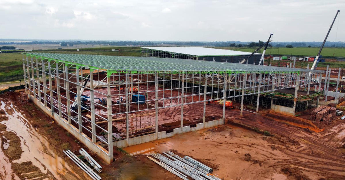 B&T Steel was proud to be involved in the development of X97 Riverfields, a premier industrial park situated in the strategic industrial zone of Witfontein, Kempton Park. The project comprises seven modern warehouses designed for efficiency, accessibility, and durability. B&T Steel provided a comprehensive range of services, including detailing, fabrication and manufacturing, transport and assembly, and painting of all structural steel components.